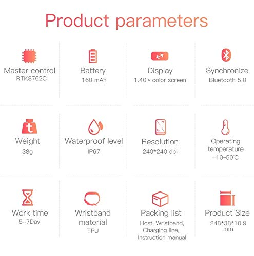 Schermo: TFT. Versione di Bluetooth: 5.0. Dimensione dello Schermo: 1.4 Pollici. Risoluzione dello schermo: 480×320. Impermeabile / Resistente all’acqua: sì, IP Valutazione: IP67