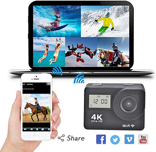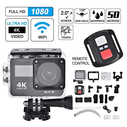 4K Action Camera, Full Hd 1080P Wifi Doppi schermi Touch Screen Videocamera sportiva 130 ° grandangolo Videocamera per…