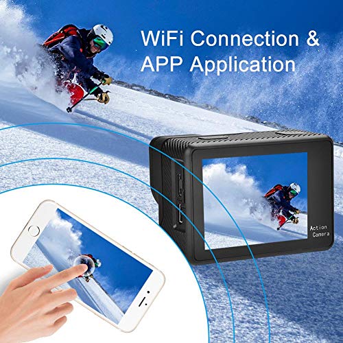 📷 【ACTION CAMERA WIFI CON SCHERMO DA 2 “】 📷 Lo schermo da 2 pollici consente di visualizzare in anteprima il video nella action cam.Controllo WiFi 720P, quando connesso al WiFi tramite app per telefoni cellulari, è possibile ottenere registrazioni, fotografie, anteprima, controllo del menu e così via sull’app.