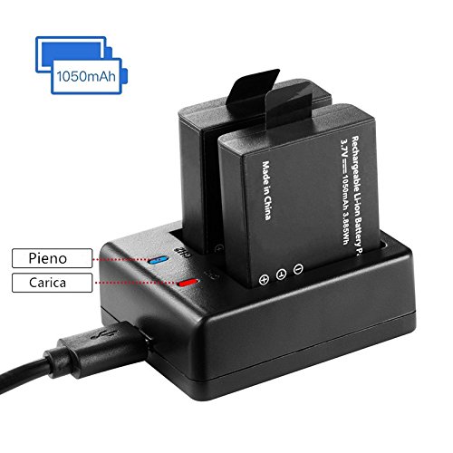【Action Cam Batteria Kit】Viene fornito con 3 Pcs 1050mAh batterie + 1 base di Doppio Ricaricabile Caricabatteria batteria + 1USB cavo di ricarica.