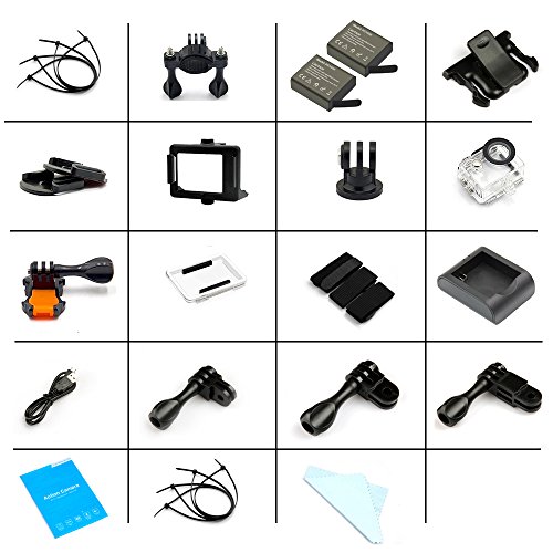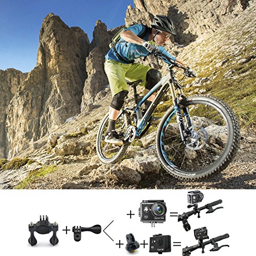 〖2 batteria ricaricabile 1050mAh e accessori gratuiti〗 in grado di collegare la fotocamera sportiva a bicicletta, casco, tavola da surf …