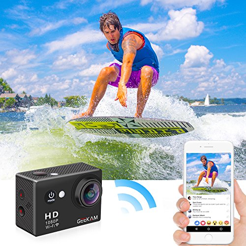 〖Fotocamera per lo sport Full HD 1080P〗 Fotocamera per lo sport Geekam 1080P / 30 fps, 720P / 60 fps, foto da 12 MP. Cattura video e foto spettacolari in modo rapido e semplice con il semplice clic di un pulsante