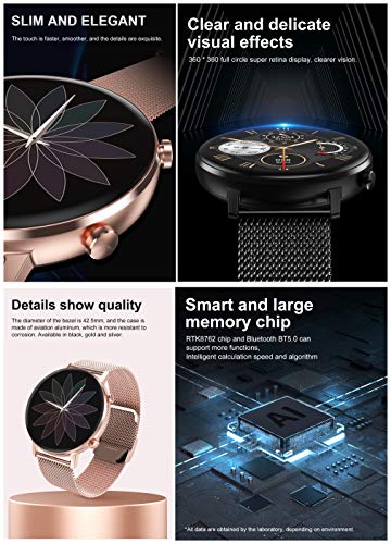 【Monitoraggio della salute】utilizza il sensore HR per un monitoraggio preciso ed efficace della frequenza cardiaca, della pressione arteriosa e della misurazione dell’ossigeno nel sangue. Questo orologio rileva automaticamente il sonno di notte e analizza la qualità del sonno con sonno profondo e sonno leggero e tempo di sveglia. I silenziosi avvisi di vibrazione possono svegliarsi senza disturbare gli altri.