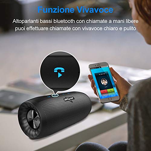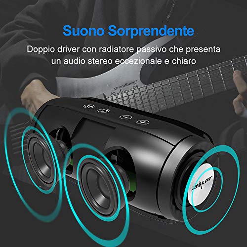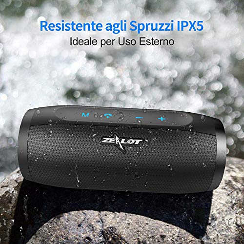 Cassa Bluetooth, Zealot Altoparlante Wireless, Stereo Potente, Portatili, Batteria 4000mah,20H Playtime, Bluetooth 5…