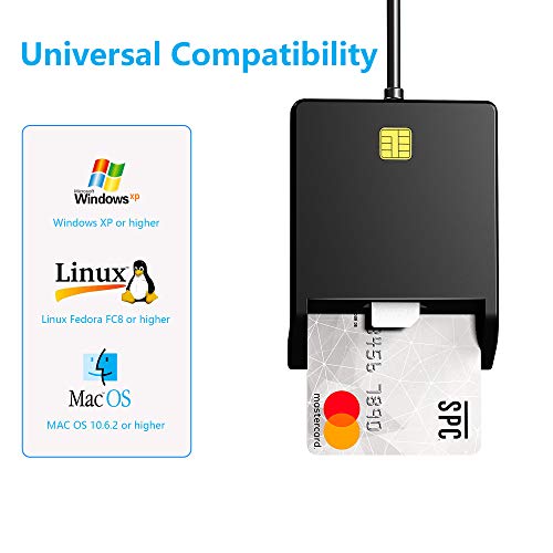 🔰 【Compatibilità universale】La comunicazione del lettore di smart card con il PC tramite la porta USB, si applica a laptop, laptop e desktop Apple, supporta sistemi sopra Microsoft Windows XP, Linux Fedora FC8 e MAC OS 10.6.2.