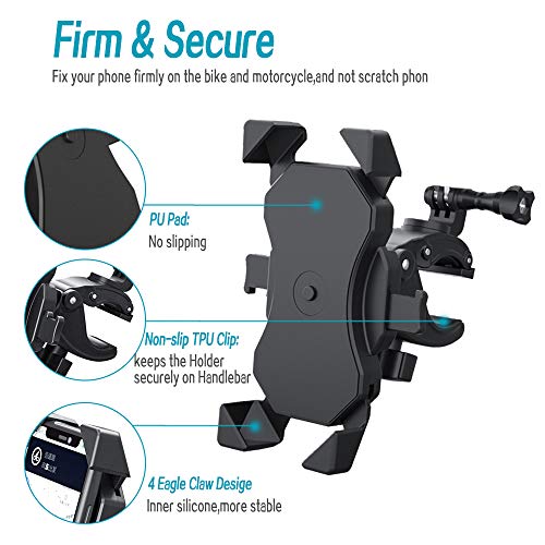 🚴 【Stabile e Sicuro】: il supporto per telefono da bicicletta è dotato di 4 artigli in silicone resistenti all’usura e pad in PU antiscivolo, che prevengono efficacemente i graffi del telefono. Inoltre, questo design può catturare saldamente il tuo telefono. Il bloccaggio automatico collabora con unidirezionale Prevent Back Gear, previene il verificarsi di allentamenti durante un intenso esercizio.
