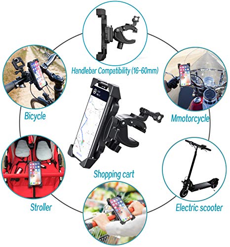 🚴 【Compatibile con il Manubrio】: il diametro della base di montaggio può essere regolabile da 0,64 pollici (1,6 cm) a 2,4 pollici (6,0 cm) per qualsiasi manubrio di bicicletta / bici / moto / scooter / bici da strada / mountain bike / bici da strada / bicicletta elettrica. Adatto a tutti gli oggetti rotondi e piatti Morsetto per tubi da 16 mm a 60 mm. Come scooter elettrici, passeggini, tavoli e sedie. Libera le tue mani sempre e ovunque.