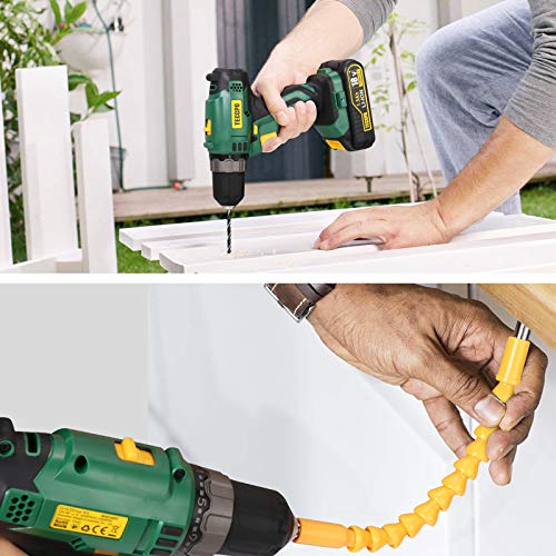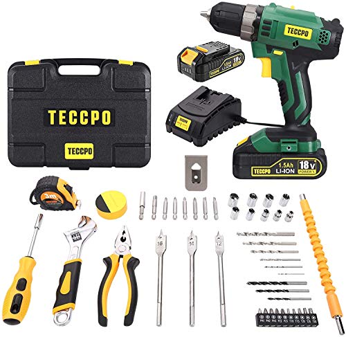 ❤ [Offerta Capodanno 2021] 1 TECCPO Trapano Avvitatore a Batteria 18V, 2 Batterie al Litio 1,5 ah, 1 Caricabatterie rapido,1 Chiave regolabile 8″, 1 Pinze, 1 Metro a nastro 3M, 1 Cacciavite multitesta, 1 Albero flessibile,1 Nastro isolante, 6 Punte Metallo(1.5, 2.5, 3, 4, 5, 6mm), 3 Punte per legno(3,4,5mm), 3 Punte per Legno Piatte(12, 14, 16mm), 6 Punte da 50 mm per viti, 10 Punte da 25 mm per viti, 10 Manicotti (1Connettore), 1 Asta di prolunga, 1Valigetta Rigida.