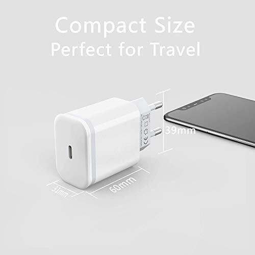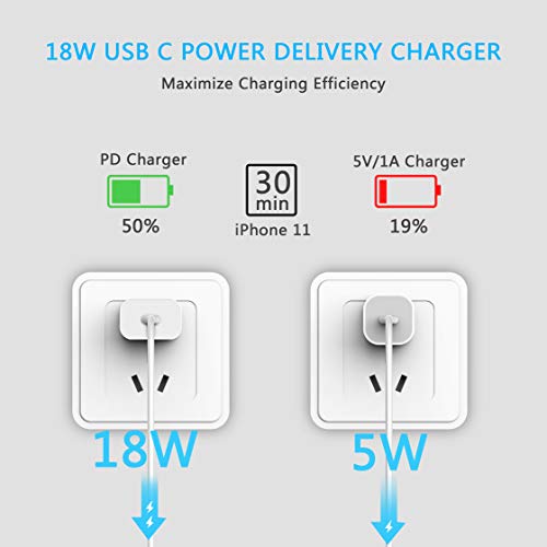 Caricatore USB C da 20W AXIULOO: carica iPhone 11 Pro o altri dispositivi iPhone al 50% in soli 30 minuti. Per ottenere una ricarica rapida, ti consigliamo di utilizzare un cavo USB da C a C in più o un cavo da USB a Lightning che funziona con questo caricatore di tipo C.