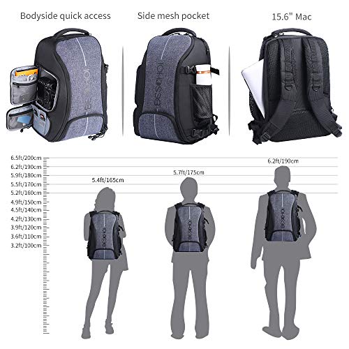 【Scomparto per Laptop da 15,6 pollici】 Dimensioni dello spazio per laptop con zaino per fotocamera: 42 * 30 * 27 cm, in particolare per laptop da 15,6 “, piallando lo spazio in modo ragionevole. MacBook e tablet fino a 15,6 pollici