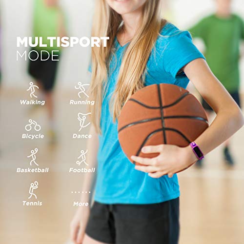 [MONITORAGGIO ATTIVITÀ GIORNALIERA] Tiene traccia automaticamente dei passi, della distanza e delle calorie bruciate dai tuoi figli. Supporta 14 tipi di attività: camminata, corsa, ciclismo, escursionismo, arrampicata, badminton, allenamento, spinning, tapis roulant, yoga, basket, calcio, tennis e danza.