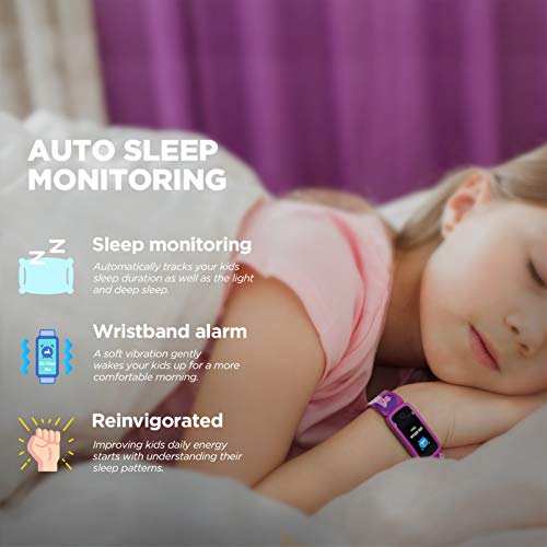 [FREQUENZA CARDIACA, TRACCIAMENTO DEL SONNO E SVEGLIA A VIBRAZIONE] Il fitness tracker può monitorare automaticamente la frequenza cardiaca giornaliera in tempo reale dei tuoi figli e tenere traccia del loro sonno notturno. Ottieni i dati sulle tendenze del sonno dei tuoi figli durante la notte tramite l’app. La sveglia a vibrazione può svegliare i tuoi bambini senza disturbare gli altri.