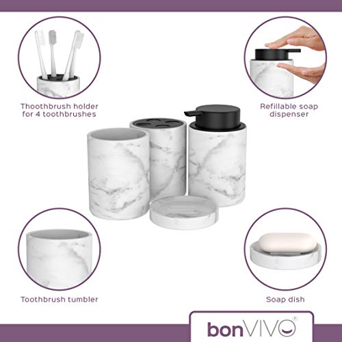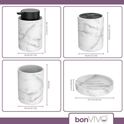 bonVIVO Marmora Set Accessori Bagno Completo Moderno – Kit con Porta Sapone, Porta Spazzolini, Dispenser per Sapone…