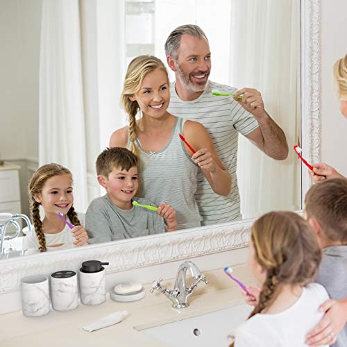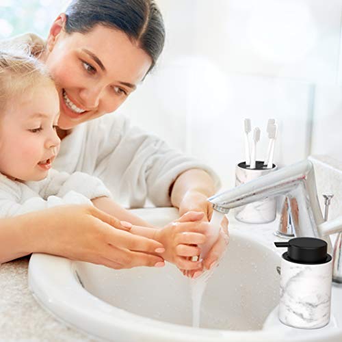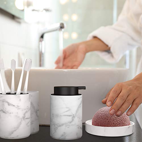 ✔ ELEGANTE: Il set bagno è semplice ma elegante al tempo stesso grazie al design che ricorda il vero marmo con rifiniture in nero. Dal porta saponetta al bicchiere, ogni singolo pezzo del set si rivelerà essenziale per il tuo arredo bagno.