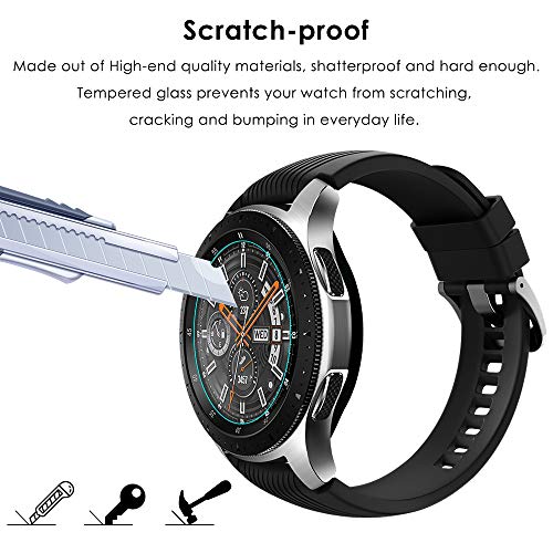 【Sturdy & Anti-Scratch】 – Pellicola salvaschermo per orologio Galaxy realizzata con materiali di alta qualità, la protezione per lo schermo Galaxy Watch in feltro di vetro temperato robusto. Infrangibile e resistente, lo screen saver Galaxy Watch non si graffia facilmente. Il vetro temperato è abbastanza spesso da proteggere il tuo investimento dai graffi e dagli urti della vita di tutti i giorni.