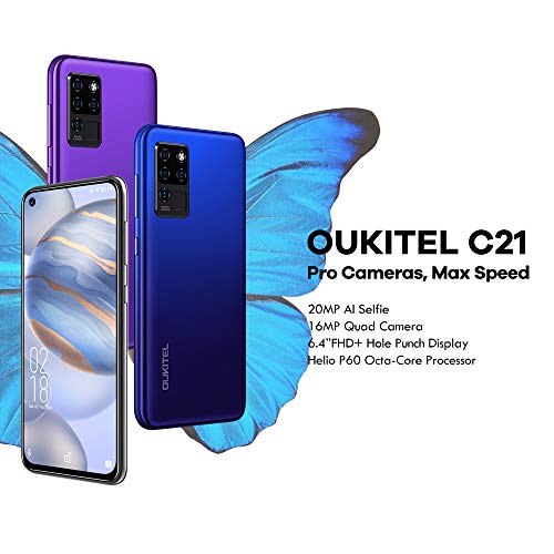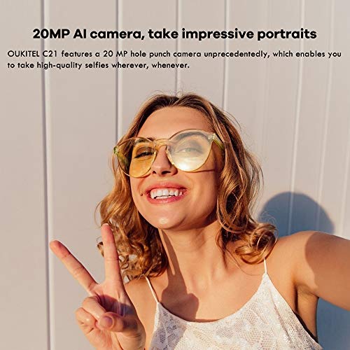 [Fotocamera perforatrice Al da 20 MP] OUKITEL C21 offerte smartphone dispone di una fotocamera perforatrice da 20 MP senza precedenti, che ti consente di scattare selfie di alta qualità ovunque e in qualsiasi momento.