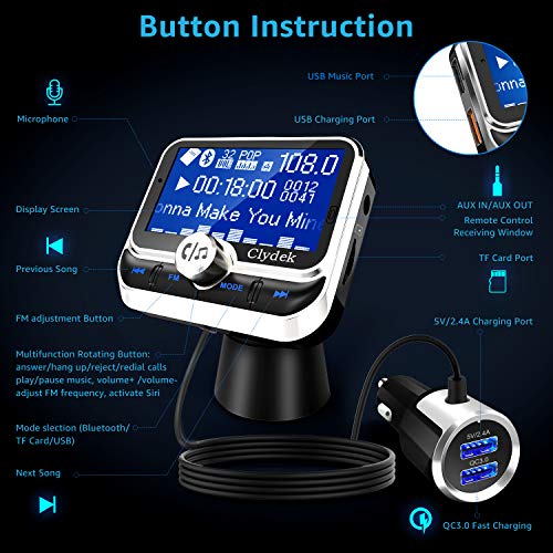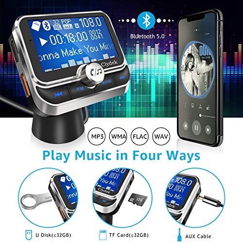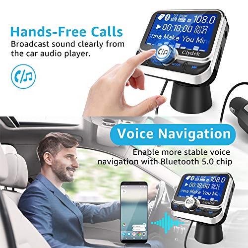 Clydek Trasmettitore FM per Auto, Wireless Bluetooth 5.0 Adattatore per Autoradio con Doppia Porta di Ricarica QC3.0 e…