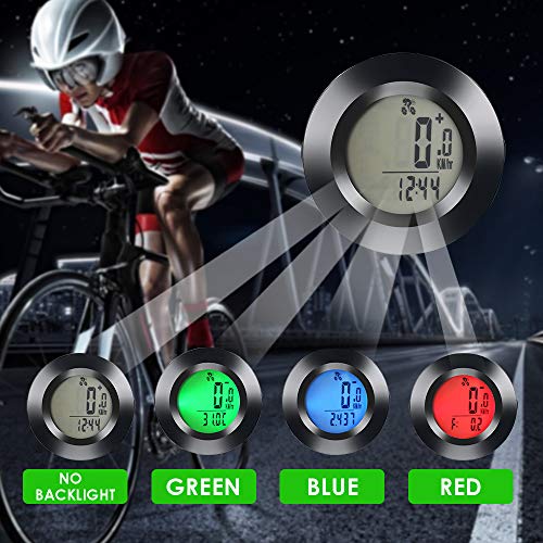 🚴ACCENSIONE / SPEGNIMENTO AUTOMATICO & RETROILLUMINAZIONE A 3 COLORI — Il tachimetro del ciclo ha 3 colori di retroilluminazione: verde / blu / rosso. È possibile impostare la retroilluminazione in modo permanente quando è necessario guidare di notte. Se dopo 5 minuti non viene immesso alcun segnale, lo schermo si spegne automaticamente per risparmiare la batteria. Quando si sposta o si preme un pulsante qualsiasi, il computer si accende automaticamente.