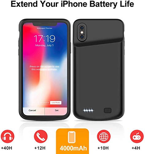 Cover Batteria per iPhone XS/X/10, 4000mAh Custodia Ricaricabile 2 in 1 Cover Caricabatterie Portatile Batteria Esterna…