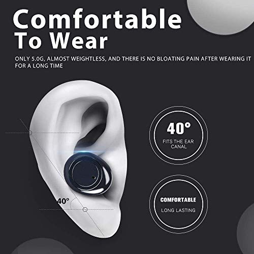 ♫【Sicurezza Fit & Mini Design】Gli auricolari wireless sono progettati per adattarsi comodamente alle orecchie e pesano solo 4,6 g ciascuno. Il loro design si adatta in modo sicuro alle orecchie proprio per non farli cadere, vengono fornite 3 punte di diverse dimensioni . Perfetto per lo sport, allenamento, corsa, jogging, ascoltare musica e guardare la TV.