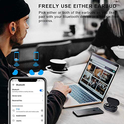 ♫【TWS & BLUETOOTH 5.0】Gli auricolari wireless sono dotati di chip Bluetooth 5.0 che permette di mantenere una connessione stabile e a bassa latenza fino a 15 metri di distanza quando si gioca o si guardano video. 2 auricolari hanno il microfono incorporato ed è possibile utilizzare uno di essi a propria scelta per effettuare chiamate.