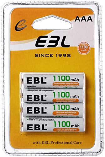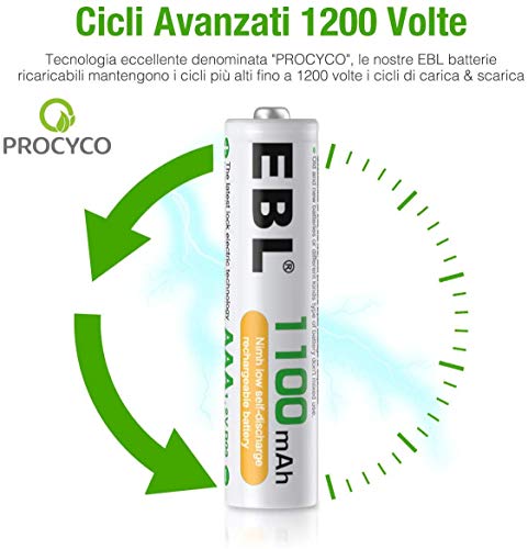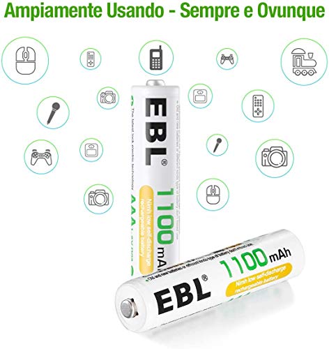 EBL 1.2V AAA Batterie Ricaricabili Durature, Pile Ricaricabili da 1100mAh Ni-MH con 1200 Tech, Confezione da 4 pezzi
