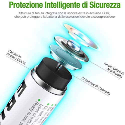 🔋【Contenuto di Pacchetto】- 4 pezzi 1100mAh 1.2V NiMh AAA batterie ricaricabili,e una scatola di protezione per ogni 4 batterie. Questa scatola protettiva montabile sulla parete, conservazione più comoda.