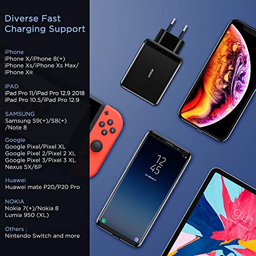 Due Porte – La porta USB-C Power Delivery e la porta USB standard caricheranno simultaneamente i tuoi dispositivi compatibili con USB-C e USB, risparmiando tempo e spazio di uscita. (L’uscita USB standard non è compatibile con la ricarica rapida)