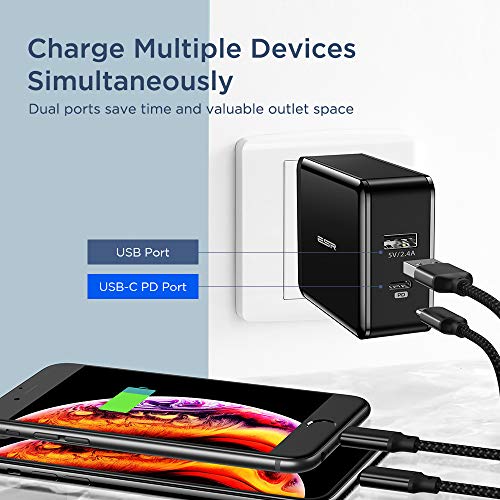 ESR Caricatore da Muro 2 Porte 30W (18W USB-C Power Delivery + 12W USB) Compatible con iPhone 12 Mini/12/12 Pro/12 PRO…