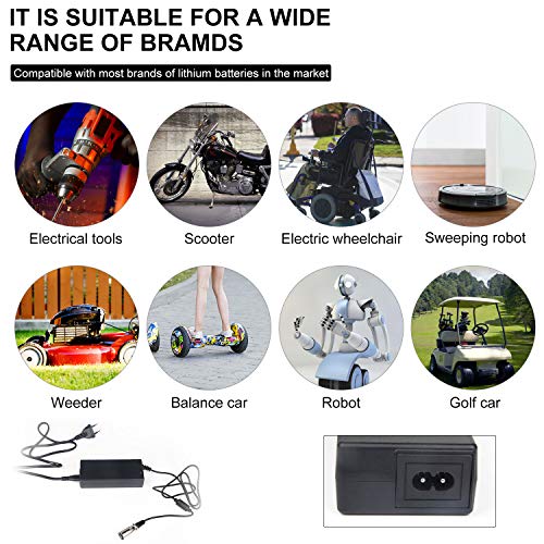 [Ampia applicazione] Caricabatterie elettrico per biciclette di alta qualità per batterie da 36 V 10 Ah (adatto per la maggior parte delle biciclette elettriche, scooter elettrici, Harley, batterie ricaricabili, monocicli, ecc.).