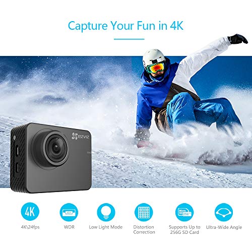 EZVIZ S3 Action Camera 4K Action Cam con custodia impermeabile fino a 40m action camera con LCD di 2″ touchscreen 150° grandangolo con la modalità in luce bassa WiFi e Bluetooth integrati