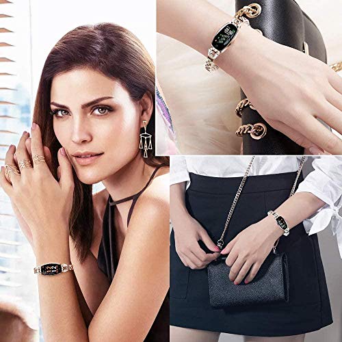 ❤ 【Design elegante per donna】 : Questo fitness tracker da donna dotato di touchscreen colorato da 0,96 pollici, guscio in metallo e fascia in lega di zinco decorata con strass bling. Sottile ed elegante per completare un polso sottile che ti fa sembrare alla moda e brillante. Ha 3 quadranti da sostituire, scegli come preferisci.