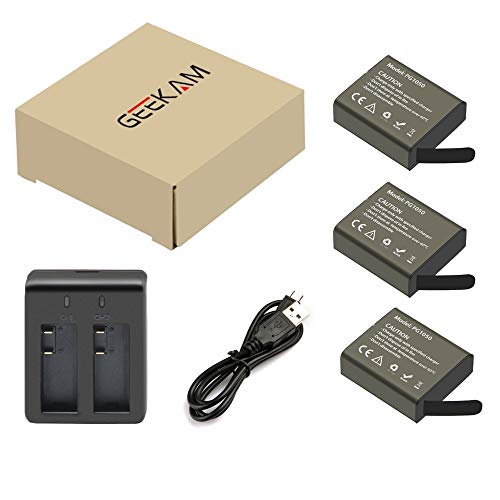 GeeKam PG1050 Action Cam Batteria 1050mAh Batterie Ricaricabili (3 Pezzi) con USB Caricatore per Crosstour/APEMAN…