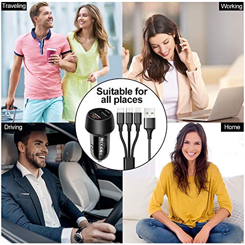 【Cosa Ottieni】Caricabatteria per auto.3 in 1 Cavo di ricarica – Lightning/Micro USB/USB Tipo C.12 mesi di garanzia e servizio clienti amichevole.