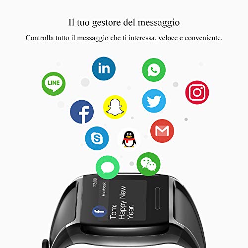 【Altre potenti funzionalità multiple】Modalità Sportive, Sonno Monitor, Contapassi, Contacalorie, Avviso di chiamata (Riaggancia), Gira il polso per scattare foto, Allarme, Avviso Sedentario, SMS e Avviso SNS; Connetti il GPS sul tuo cellulare puoi mostrare statistiche di corsa come il passo e la distanza e registrare una mappa del tuo itinerario di allenamento.