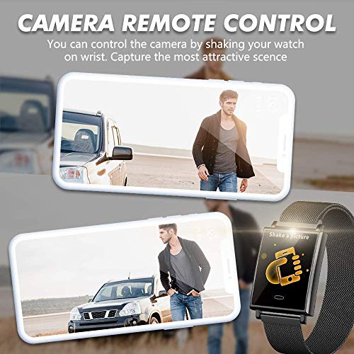 【Multiple Function】【Promemoria sedentario】 ti avvisa di rilassarti dopo un lungo lavoro 【Monitoraggio del sonno】 controlla la qualità del tuo sonno per aiutarti con un buon riposo 【Messaggi Ricorda】 ti aiuta a ottenere informazioni su Facebook e Ins, chiama e invia messaggi 【Scatta foto】 sull’orologio divertiti con amici 【IP68 impermeabile】 ti aiutano a nuotare 【Cardiofrequenzimetro e monitor di calorie】 ti aiutano a esercitare 【pressione sanguigna】 mantenerti in salute