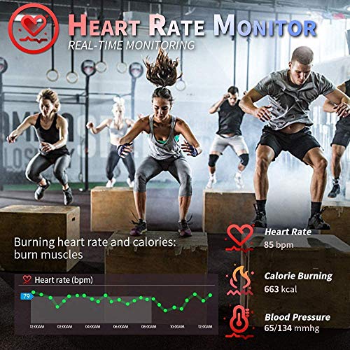 【Cardiofrequenzimetro e monitor delle calorie】 L’orologio intelligente può essere un cardiofrequenzimetro 24 ore su 24 e un monitor della pressione arteriosa.Il sensore monitorerà automaticamente ogni 10 minuti.È un buon compagno per corsa, fitness, nuoto, ciclismo e altri sport . Consuma le tue calorie e i dati di combustione dei grassi ti aiutano ad allenarti perfettamente. 【Pressione sanguigna】 con chip come attrezzatura medica professionale, aiuta a misurare la pressione sanguigna quotidiana