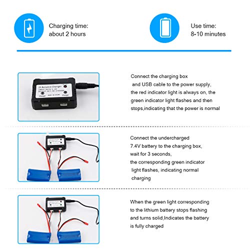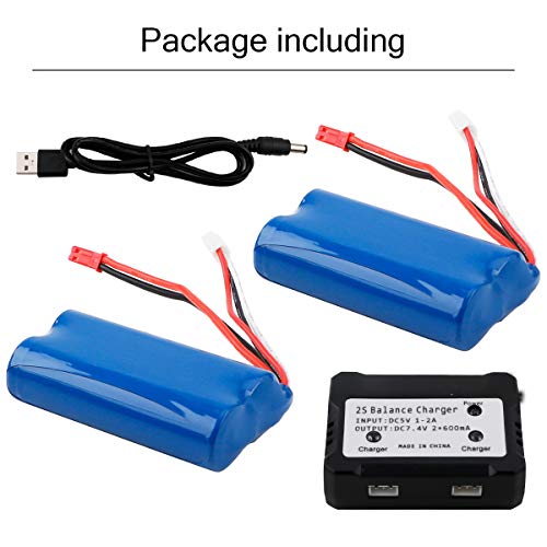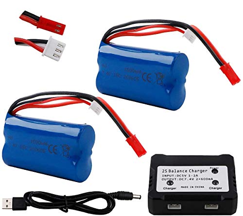 Package include 2 pack 7.4V 1500mAh battery pack, 1 pcs USB charger cable,1 pcs balance charger.Can charge 2 battery at same time