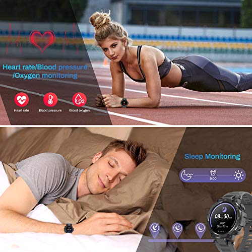 【Orologio Misura Pressione Cardiofrequenzimetro da Polso】Orologio Fitness utilizza sensori ottimizzati ad alte prestazioni e algoritmo di frequenza cardiaca intelligente; Cardiofrequenzi pressione sanguigna e l’ossigeno nel sangue possono essere monitorati sempre e ovunque; Puoi anche eseguire il monitoraggio manualmente per risparmiare energia dello smartwatch. Smatwatch viene utilizzato insieme all’app “Da Fit” fornire analisi dei dati di monitoraggio. Ruotando la schermata orologio si aprirà