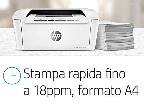 Stampa rapida perfetta per ogni spazio. Ottimizzate la produttività con velocità di stampa fino a 18/19 ppm. La stampante HP LaserJet compatta, perfetta per ogni spazio. Il design all’insegna della razionalità e dell’eleganza consente un utilizzo facile e intuitivo Qualità senza compromessi. Questa stampante laser estremamente compatta offre una qualità eccezionale, pagina dopo pagina. Contribuisce al risparmio energetico grazie alla tecnologia HP Auto-On/Auto-Off. Subito pronta per la stampa con la cartuccia toner originale HP preinstallata. Eseguite stampe e scansioni da mobile in tutta semplicità con l’applicazione HP Smart. Stampate dal cloud, eseguite scansioni dal vostro smartphone e ordinate il toner in tutta semplicità con l’applicazione HP Smart. Stampate facilmente da un’ampia gamma di smartphone e tablet. Condividete le risorse in tutta semplicità, grazie ad accesso e stampa in rete wireless. Collegate il vostro smartphone direttamente alla stampante e stampate facilmente senza accedere alla rete.