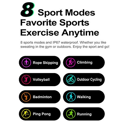 【Impermeabile IP67 e multifunzione】 Il nostro orologio intelligente supporta il livello di impermeabilità IP67 per consentire l’uso durante il lavaggio delle mani o sotto la pioggia. Promemoria caldo: non indossare quando si fa una doccia / bagno caldo o una sauna, i vapori penetreranno nei sensori interni. Non è consentito immergerlo a lungo in acqua, né usarlo mentre si nuota.
