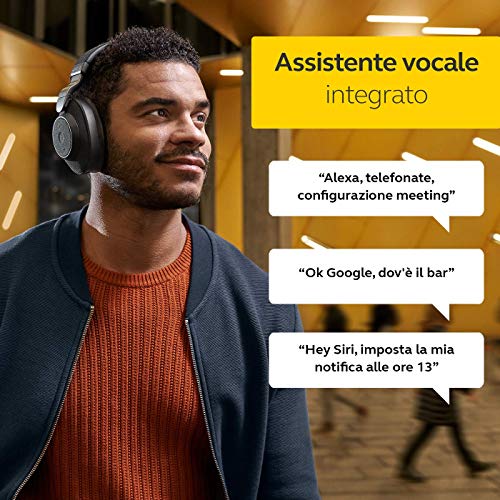 Si volete personalizzare il vostro suono, nessun problema, l’applicazione Jabra Sound+ vi offre questa opportunità. Con un solo touch potrete essere collegati istantaneamente alla funzione “assistente vocale”, la quale vi permette a sua volta di fissare un appuntamento o leggere i messaggi. L`autonomia della batteria assicura una connessione fino a 41 ore, se la funzione Active Noise Cancelling è attiva, la batteria è pari a 36 ore.