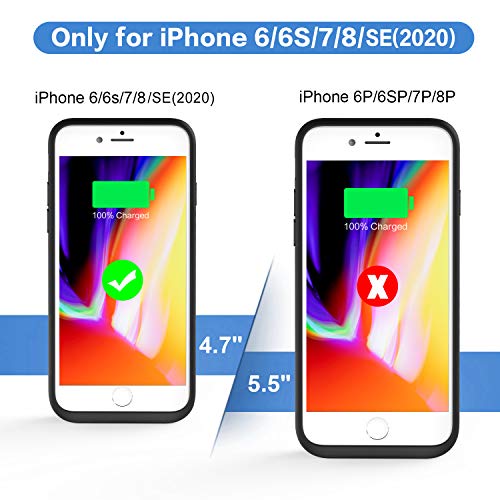 🔋 【 Cover Batteria con Grande Capacità 】 La cover batteria da 6600 mAh offre ulteriori 200 ore di standby, 18 ore di conversazione, 17.5 ore di video, 62 ore di musica o 16 ore di navigazione Web per il tuo telefono. Perfettamente adatto al tuo iPhone 6/6S/8/7/SE 2020, progettato specificamente per il modello da 4,7 pollici.