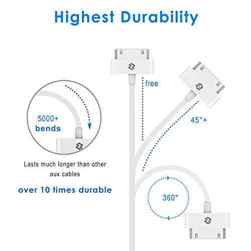 Mela connettore a 30-pin a USB Tipo A; Conduttori pesanti per gestire la ricarica per iPad 1/2/3, iPhone 4/4S, iPhone 3G/3GS, iPod nano 5/6 generazione e iPod Touch 3/4 generazioni
