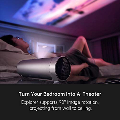 Innovativa lente rotante a 90°: La rotazione dell’immagine di JMGO Explorer a 90° consente di proiettare dalla parete al soffitto, è il momento di goderti le tue serate di film a letto