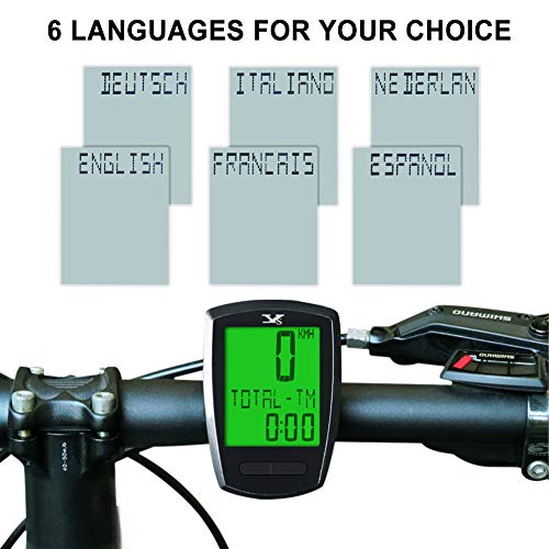 🚲 Senza Fili e Funzione di Memoria : Wireless design rende più conveniente e durevole. Dopo nessun segnale in ingresso di 300 secondi, lo schermo entrerà in modalità standby con display LCD. Ha una funzione di memoria. Questo ciclo computer si riattiverà automaticamente quando lo si agita o viene immesso un segnale o viene premuto un pulsante qualsiasi.
