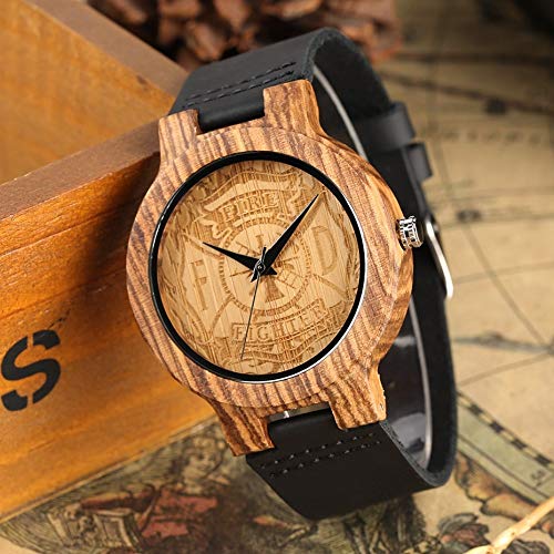 LCDIEB Artigianato Incisione Vigile del Fuoco Quadrante Orologio in Legno Orologio Sportivo da Uomo Cinturino in Vera…