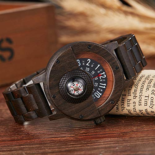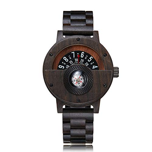 LCDIEB Uomo Donna Orologio in Legno Quadrante Unico Giradischi Orologio Militare Maschile Bussola Orologio al Quarzo con Cinturino in Legno