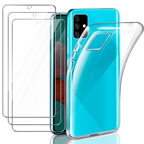 Leathlux Cover Compatibile con Samsung Galaxy A51 4G Trasparente con 3 Pellicola Vetro Temperato, Morbido Silicone…