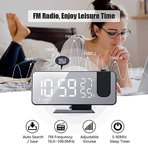 Leeofty Sveglia, Proiettore Orologio Temperatura Umidità Monitor Radio FM Caricatore del telefono Display LED…